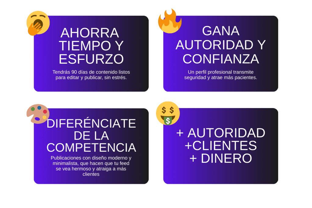 Transforma tus redes sociales en una máquina de atraer pacientes con contenido profesional y listo para publicar.